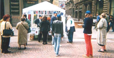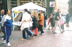 Qui tutti noi ci siamo alternati per far conoscere a chi passava la realtà dei nostri ragazzi, quanto sia importante che non si sottovaluti il problema e ci si dia da fare per dar loro una migliore qualità della vita.